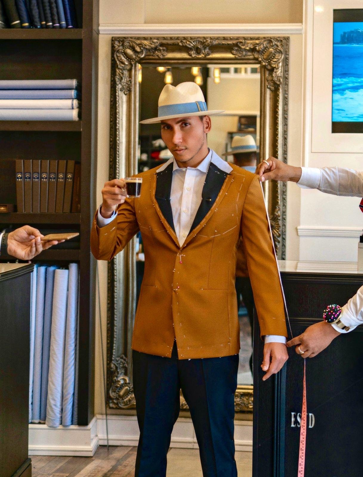 Most bespoke suits require two to three fittings to ensure balance, comfort, and a refined finish. This process allows adjustments at every stage of tailoring.